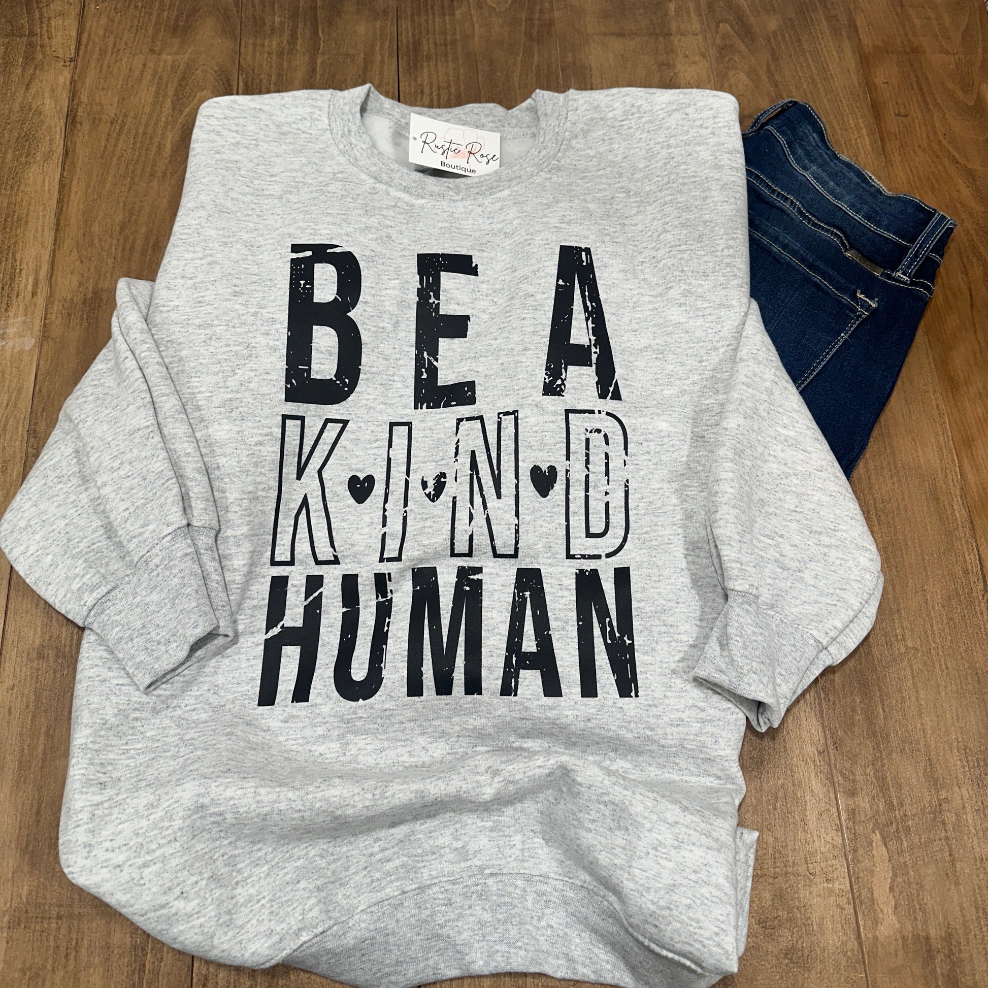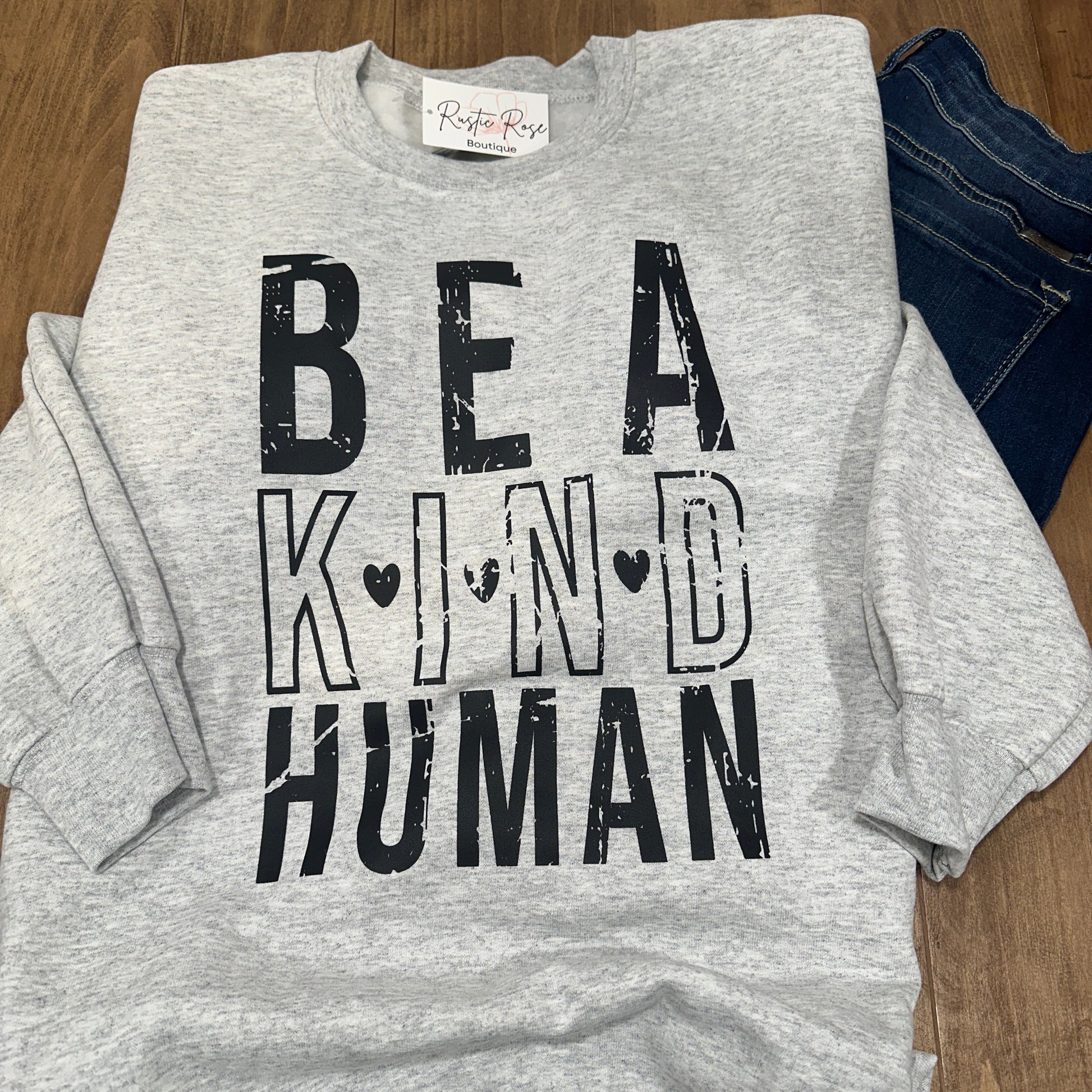 Introducing "Be A Kind Human" - the perfect addition to your wardrobe! Made with soft crewneck fabric, this garment is a gentle reminder to prioritize mental health and spread kindness wherever you go. Prioritize yourself and others with this simple yet impactful design.