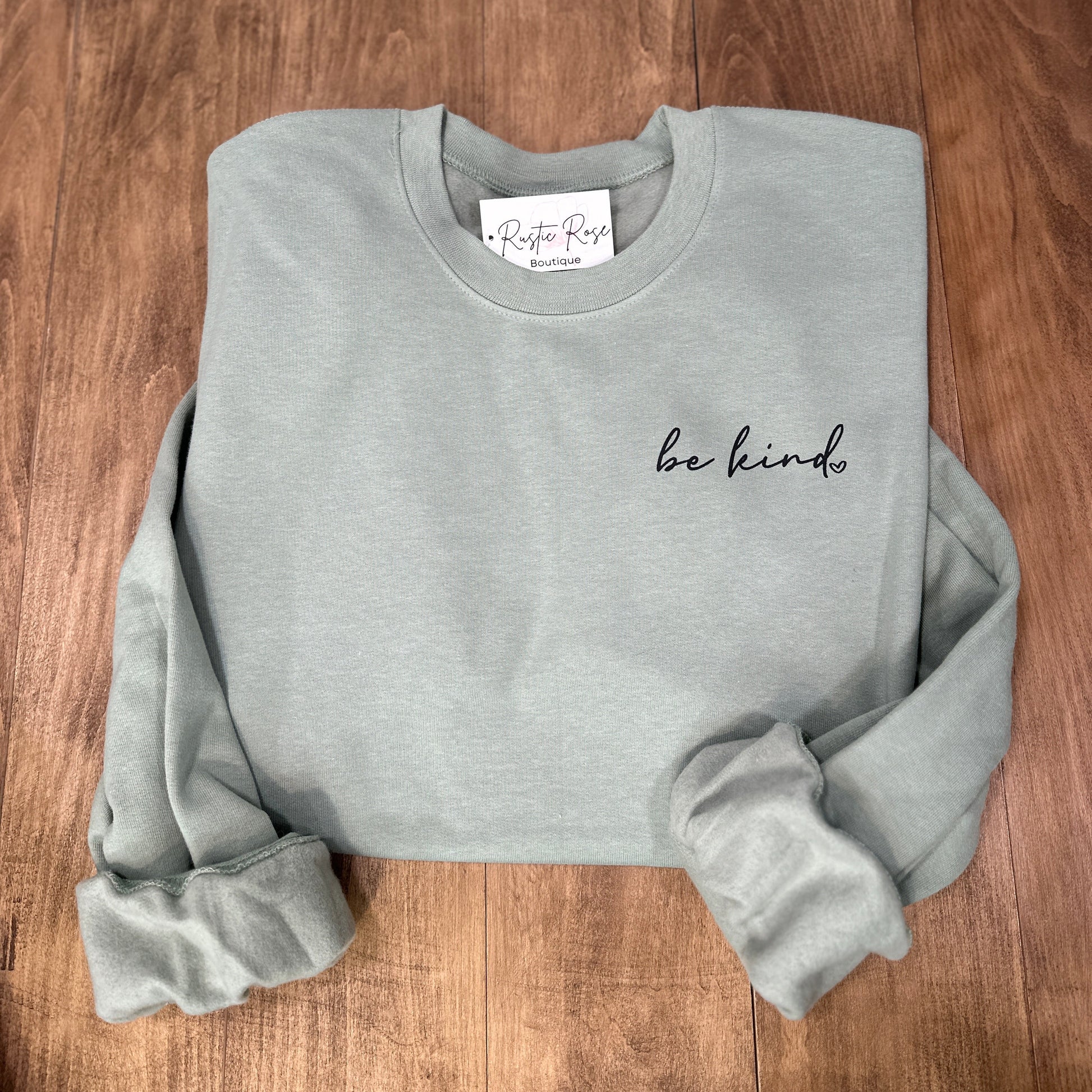 This lavender sweatshirt features a front and back design with the simple yet powerful message to "be kind." This crewneck sweatshirt serves as a stylish reminder to spread kindness wherever you go. Let your actions speak louder than words.