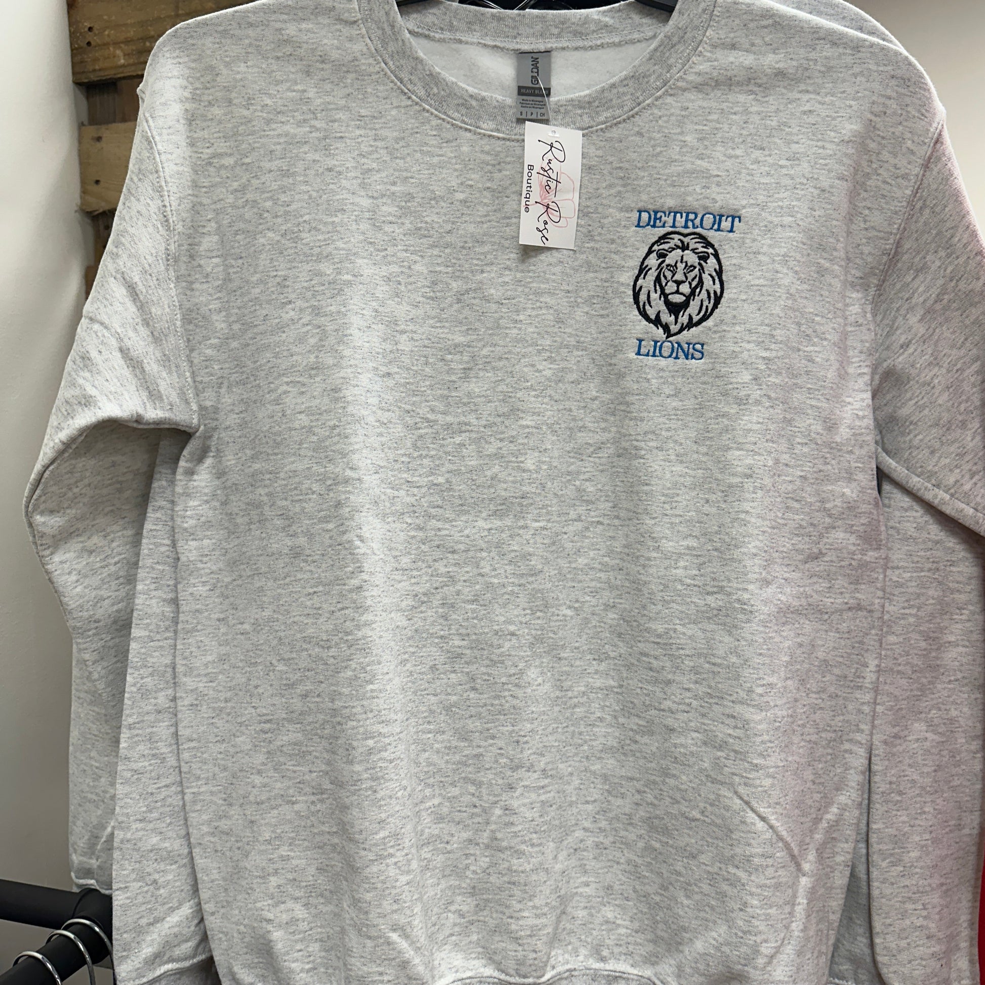 Boost your Lions pride with our Football-inspired Lions Embroidered Crew. Made with a comfortable crewneck design, this sweatshirt features intricate embroidery of lions inspo. Perfect for game day or everyday wear, show off your love for the Lions in style.