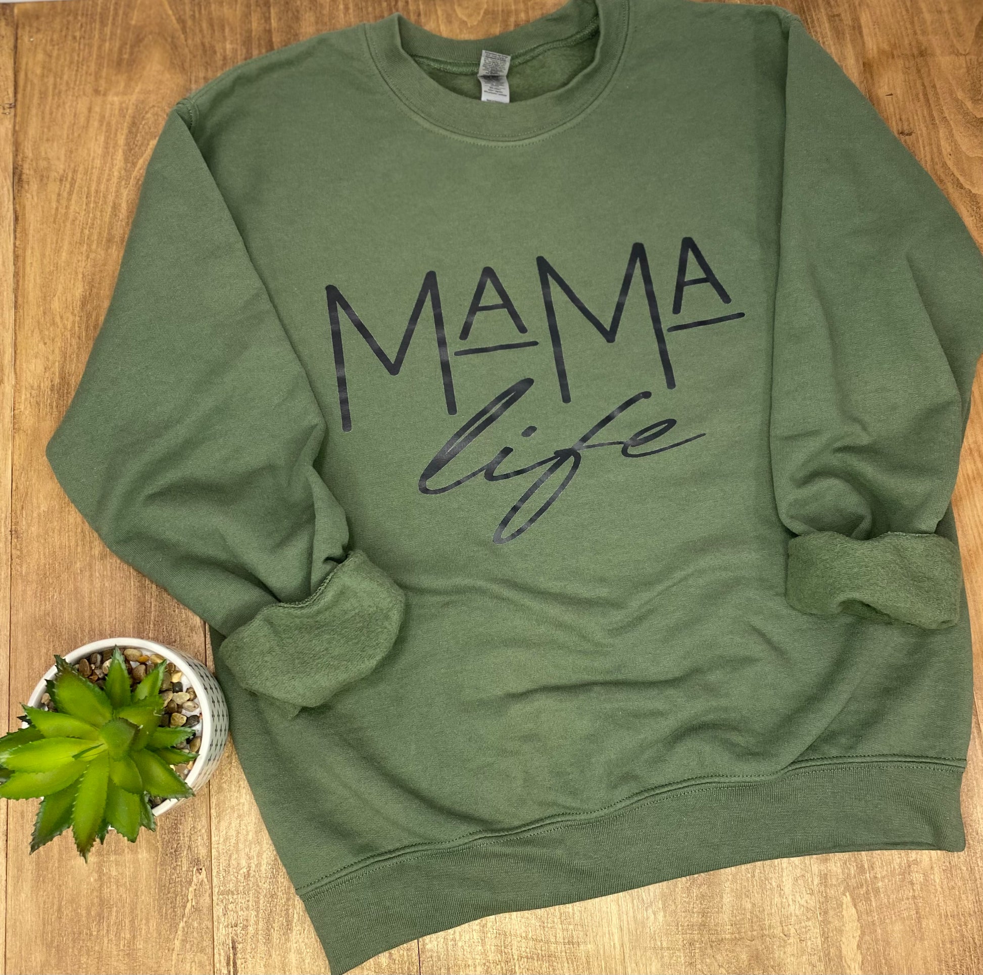 Beautiful pink or timeless military green with Mama life screen print.